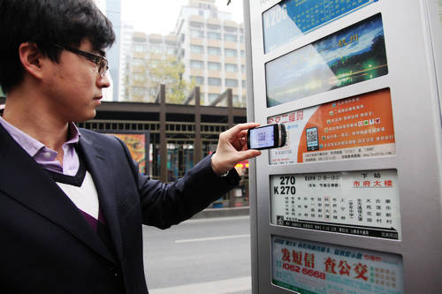 2010 年,杭州公交和杭州移动联合推出公共出行二维码查询系统,这是二维码技术在公交领域的首次应用,该系统在全市公交车站、公共自行车站布设二维码,市民扫描 二维码即可看到一张所在区域的地图,随时获取周边景点、餐饮、娱乐、道路、公交信息和换乘信息,甚至可以马上查询到你乘坐的公交车离站点还有多远,或者还 有几分钟可到终点站。因此,有了它,就像随身带了张城市地图,吃喝玩乐了然于心。