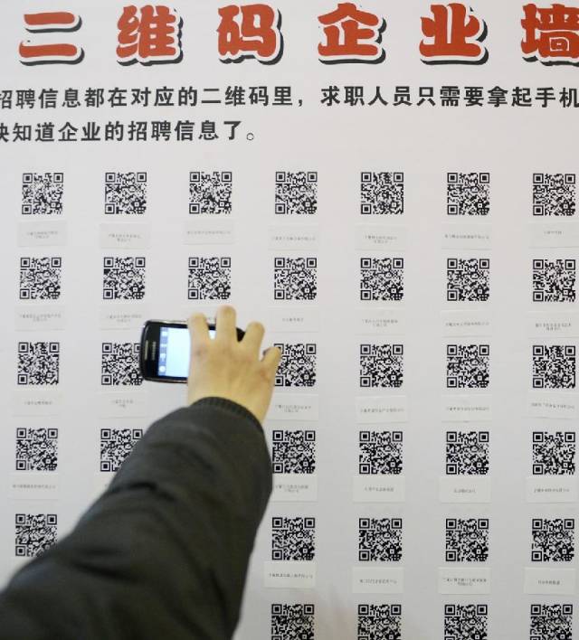 今年11月,在银川市举办的2012年冬季人才招聘会上,“二维码企业墙”吸引了众多求职者,使用手机上的“宁 夏12580求职通”客户端扫描二维码,会自动连接移动WIFI网络,求职者就能通过手机方便快捷的详细了解用工单位、岗位信息,并经由客户端投递简历。 这些内容都是储存在求职通平台上,求职者刷二维码的过程实际上是利用手机调取平台上的信息,简单高效,当场就可以完成查询、应聘。
